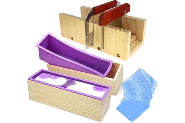 Soap Molds Making Kit with Wooden Cutter Measuring Box (44oz Purple Silicone)