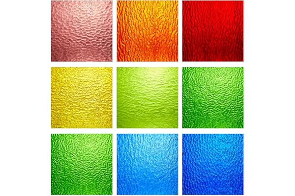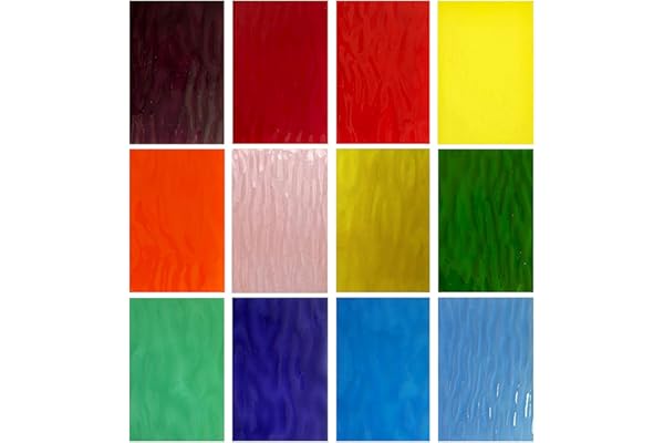 MaxGrain 6x6 inch Rainbow Transparent Textured Stained Glass Sheets Colored Cathedral Glass Packs