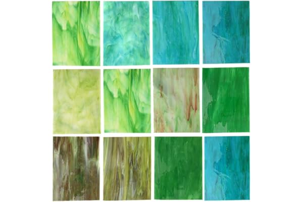 4 x 6 inch Large Cathedral Glass Mosaic Tiles for Crafts, Green Mixed