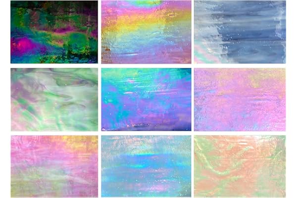 4 x 6 inch Iridescent Glass Sheets Mosaic Glass Supplies Assorted Rainbow Iridescent Colors for Glass Hobby Projects and Mosaics