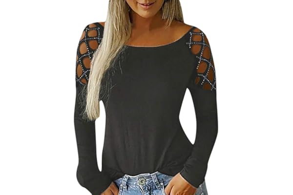 Women Hollow-Out T Shirts O-Neck Long Sleeve Casual Slim Fit Tee Tops Blouses