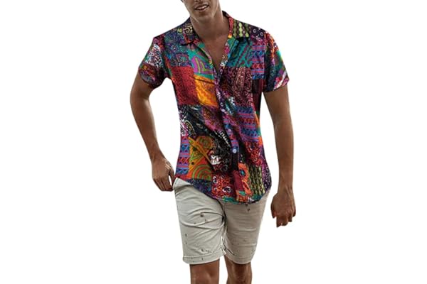 Mens Casual Hawaii Shirts Short Sleeve Beach Shirts Graphic Blouse Tops Print Big and Tall T Shirts Plus Size Tees Tops