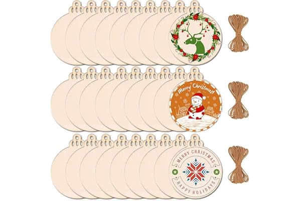 Max Fun 60PCS 3.5" DIY Wooden Christmas Ornaments Unfinished Predrilled Wood Slices Circles for Crafts Round Centerpieces Discs Holiday Hanging Decorations
