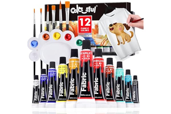 COLORFUL Fabric Paint Set for Clothes with 6 Brushes, 1 Palette, 12 Colors