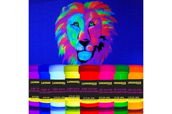 individuall Luminous 2-in-1 Glow in The Dark & UV Black Light Paint - Set of 8 Self-Luminous & Fluorescent Neon Paints