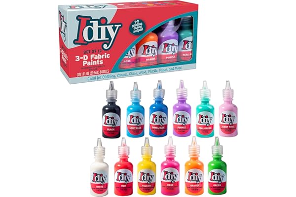 DIY Fabric Paints, Set of 12 Colors, (1oz bottles) Ultra Bright 3D Fabric Paint, Non-Toxic Water-Based and Permanent