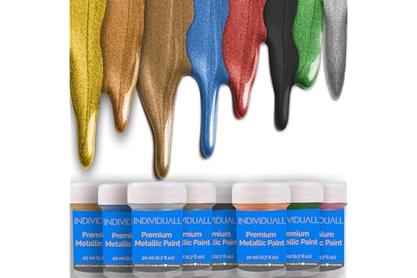 8 Pack (20 mL) Multicolored Metallic Paints for Indoor and Outdoor Use on Canvas, Paper, Rock, Wood, Metal & Walls - Gifts for Artists