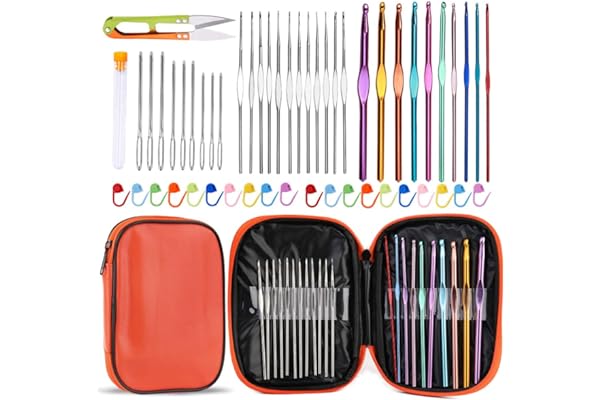 Crochet Hooks Kit with Storage Case, Ergonomic Knitting Needles Blunt Needles Stitch Marker DIY Hand Knitting Craft Art Tools for Beginners