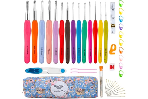 31 Piece Set with 9 Ergonomic Hook Sizes, 6 Yarn Needles, Additional Knitting & Crochet Supplies and Carrying Case