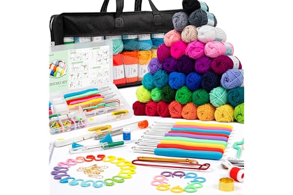 113 Piece Crochet Kit with Yarn Set–1600 Yards Assorted Yarn for Knitting and Crochet