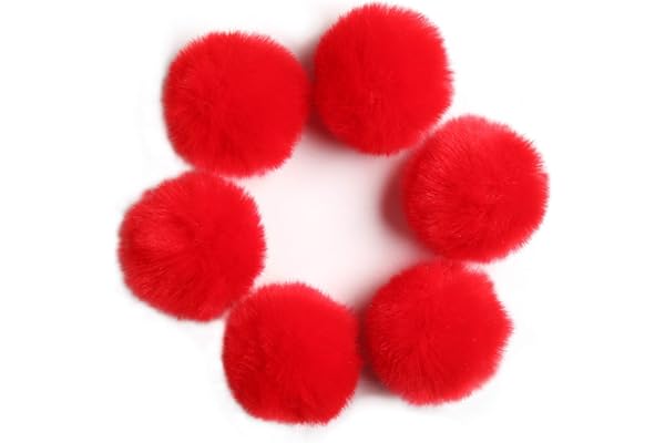 Fluffy Faux Fur Pompom Ball with Tiny Cord for Hat Shoes Garment Accessories 2.8in Pack of 6pcs Red