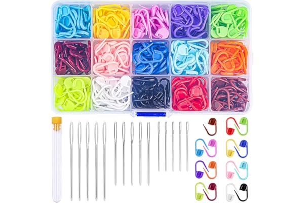 Colorful Knitting Markers Crochet Clips with 15 Pieces Big Eyes Blunt Sewing Needles (2inch/2.3inch/2.7inch)