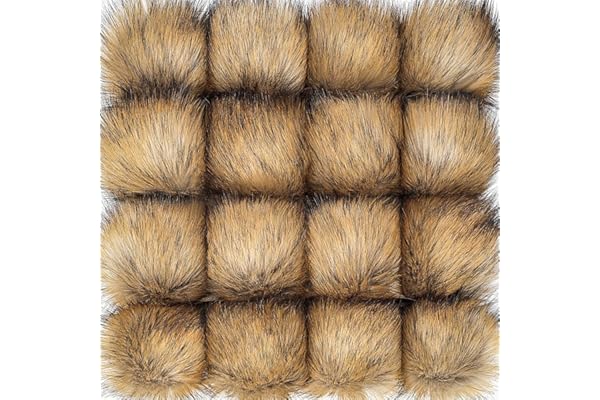 16 Pieces Faux Fur Pom Pom Ball DIY Fur Pom Poms for Hats Shoes Scarves Bag Pompoms Keychain Charms Knitting Hat Accessories (Natural)