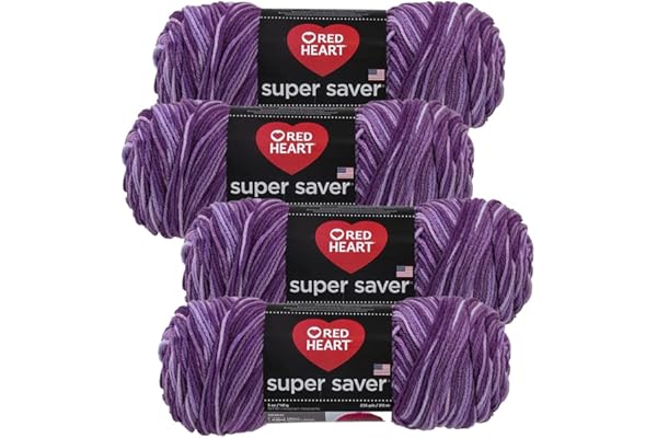 Red Heart Super Saver Yarn (4-Pack of 5oz Skeins) (Purple Tones)