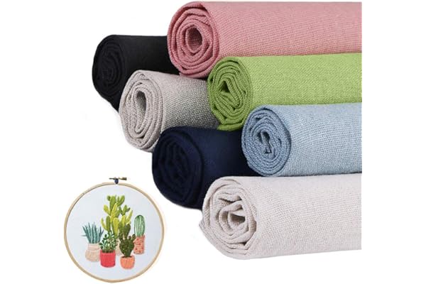 MWELLEWM 7 Pcs/Set Linen Cloth Needlework Fabric Solid Colour Cloth Garments Crafts Accessories Square Embroidery Cloth (50 * 50CM)