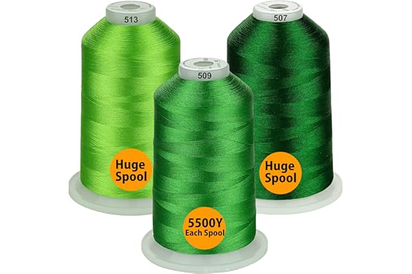 26 Selections - Various Assorted Color Packs of Polyester Embroidery Machine Thread Huge Spool 5500Y for All Purpose Sewing Embroidery Machines - 3 Differ Green