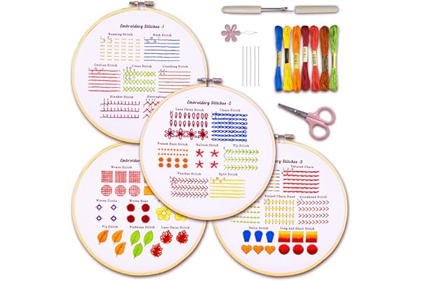 3 Sets Embroidery Kit to Learn 30 Different Stitches for Craft Lover Hand Stitch with Embroidery Fabric with Embroidery Skill Techniques