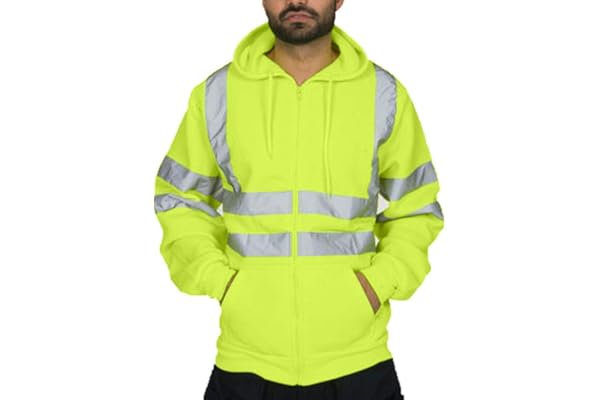 Hmlai Clearance Mens High Visibility Safety Jacket Pullover Hoodie Full Zipper Hooded Sweatshirt with Reflective Detail