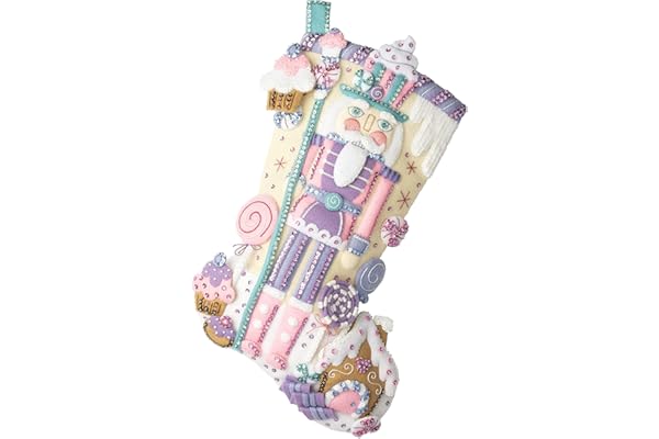 18" Nutcracker Sweet Felt Applique Stocking Kit, Perfect Craft Supplies for DIY Needlepoint Arts and Crafts, 89256E
