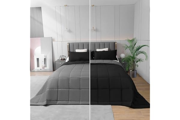 Oversized California King Plus Comforter 120x120 Extra Large King Size Quilts 3 Pieces Lightweight Reversible Down Alternative Bedspreads for All Season with 8 Corner Tabs Blanket Black/Grey