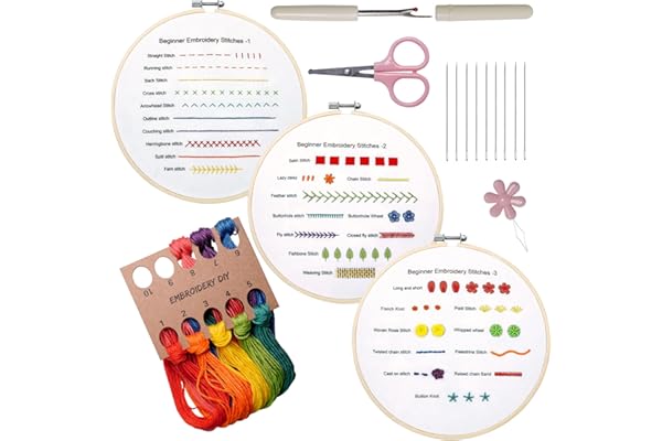 3 Sets Embroidery Kit to Learn 30 Different Stitches for Craft Lover Hand Stitch with Embroidery Fabric with Embroidery Skill Techniques