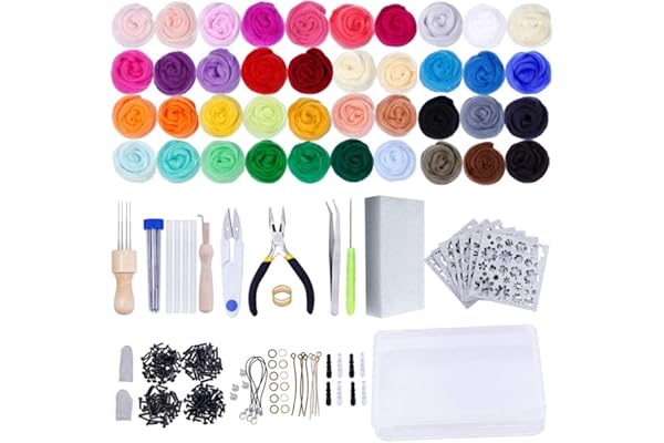 Wool Roving 40 Colors Set,Needle Felting Starter Kit,Wool Felt Tools with Felting Tool Instruction Included for Felted Animal Needle Felting Supplies