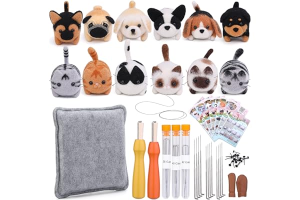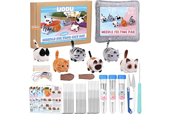 Needle Felting Supplies with 24 Pcs Felting Needles, Felting Pad, Awl, Yarn Scissors, Wool Roving, Instruction Manual, DIY Needle Felting Cat Dolls