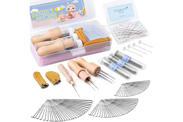 Wool Felting Supplies, Needle Felting Kit with 60 Pcs Needles Felting Needles, Foam Mat, Wooden Handle, Scissors, Perfect for DIY Felting Wool Projects