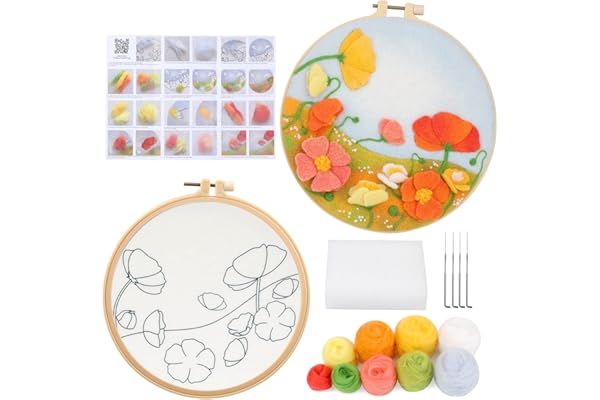 Needle Felt Supplies for Beginners, Wool Needle Felt Set with Wool Bag, Felt Needle, Picture Frame, Foam Pad, Felt Cloth and Instructions, Used for Home Decoration