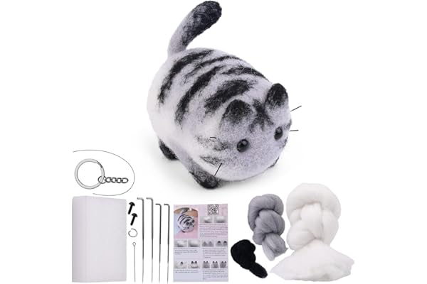 Needle Felting Supplies with 24 Pcs Felting Needles, Felting Pad, Awl, Yarn Scissors, Wool Roving, Instruction Manual, DIY Needle Felting Cat Dolls