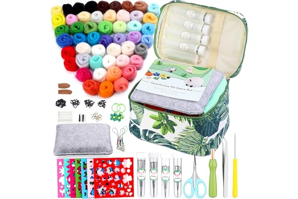 Wool Roving 50 Colors Set, Needle Felting Starter Kit, Needle Wool Felting Tools Kit, Wool Felt Tools for Felted Animal Needle Felting Supplies