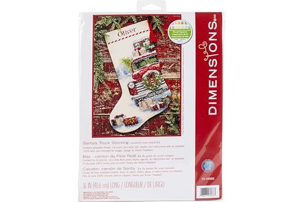 16" Long Santa's Truck Counted Cross Stitch Christmas Stocking, 14 Ivory Aida