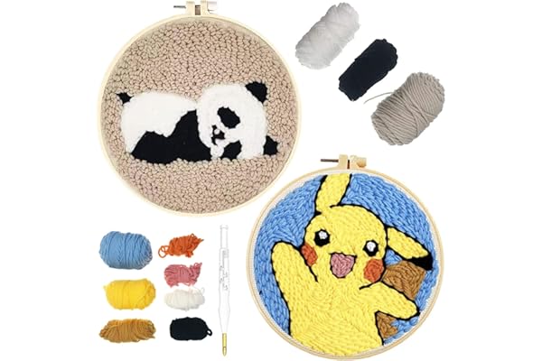 Animal Rug Hooking Beginner Kit, with an Adjustable Embroidery Pen and 8.6'' Hoop for Kids Adults Craft Gift-Panda & Pika