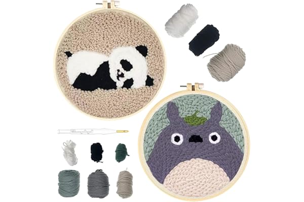Animal Rug Hooking Beginner Kit, with an Adjustable Embroidery Pen and 8.6'' Hoop for Kids Adults Craft Gift-Panda & Totor