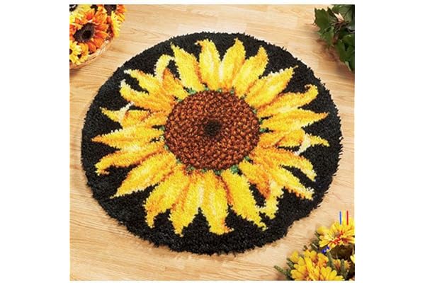 Sunflower Pattern Printed Canvas DIY Rug Crochet Yarn Kits, Embroidery Decoration 20.4" X 20.4" (52 * 52cm)