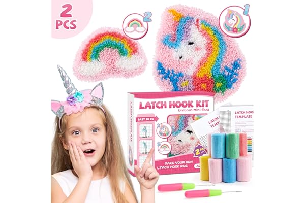 UnityStar Latch Hook Kits for Kids, 2 Pack Unicorn Rainbow Rug Sewing Set Latch Hook Craft Kits, DIY Bedroom Home Decoration Gift for Girls Beginners