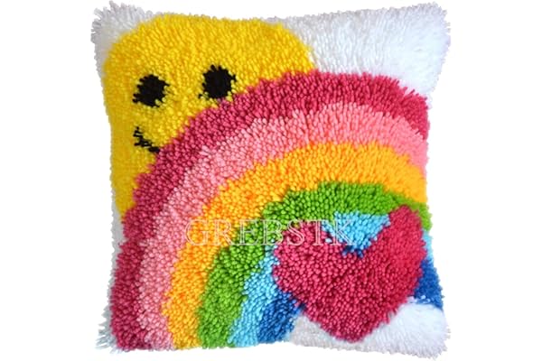 Latch Hook Kit DIY Throw Pillow Cover Sofa Cushion Cover Sun & Rainbow Pattern Paint Cross Stitch 16X16 inch