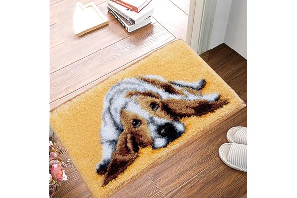 DIY Crochet Yarn Kits, 19 x 19 inch Puppy Dog Rug Making Crafts for Kids Adults and Beginners(1 Pack)