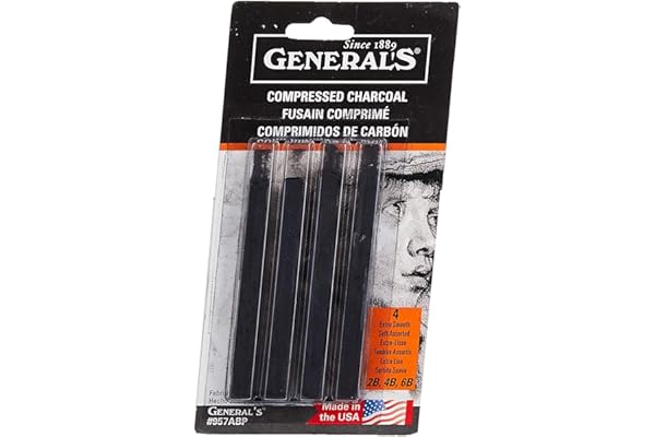 General Pencil 957ABP Compressed Charcoal Sticks 4/Pkg-Black