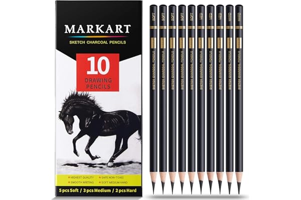 MARKART 10 Pieces Soft Medium and Hard Charcoal Pencils for Drawing, Sketching, Shading, Artist Pencils for Beginners & Artists