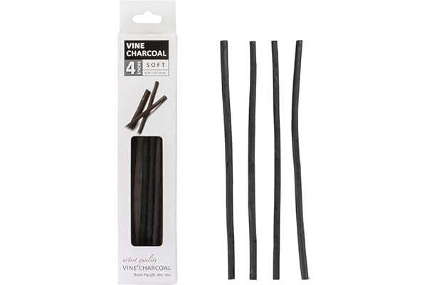 Soft, Black 4 Charcoal Sticks for Drawing, Sketching, and Fine Art