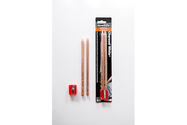 GENERAL'S Charcoal Drawing Set, White/Black, Set of 4 Pencils and 1 Eraser