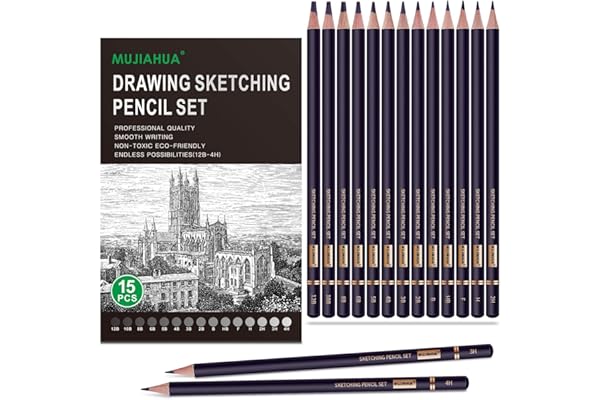 15 Pieces Drawing Graphite Pencils(12B, 10B, 8B, 6B, 5B, 4B, 3B, 2B, B, HB, F, H, 2H, 3H, 4H)for Drawing, Sketching, Shading, for Beginners & Artists