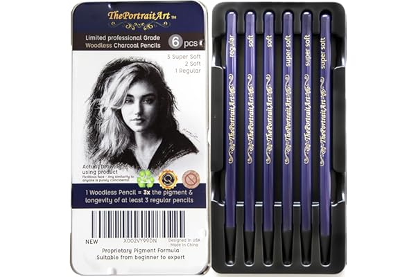 6pc Set Equivalent to 25+ Regular Pencils – Smooth Consistency on All Drawing Papers