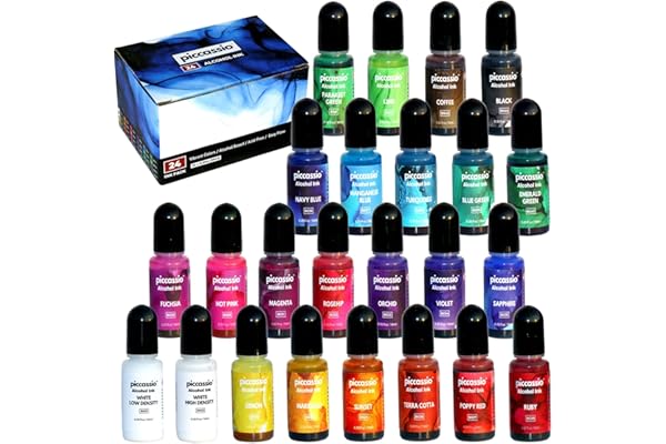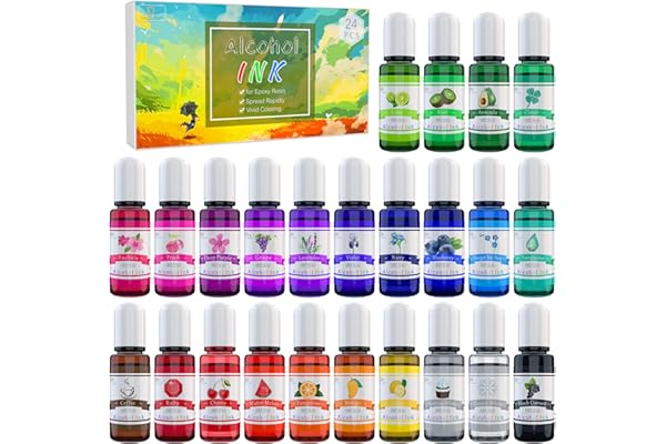 24 Highly Saturated Alcohol Inks - Acid-Free, Fast-Drying and Permanent Alcohol-Based Inks - Versatile Alcohol Ink for Epoxy Resin, Tumblers, Fluid Art Painting, Glass, Metal etc.