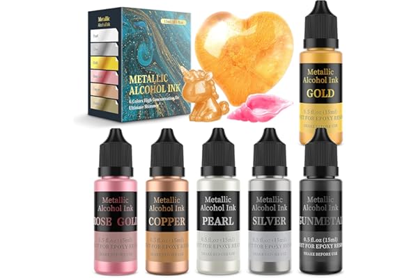 6 Color Metallic Alcohol Pigment Resin Dye, Concentrated Extreme Shimmer Alcohol-Based Inks for Epoxy Resin Yupo Tumbler Cups Acrylic Pouring Paint (15ml/.5 fl oz )