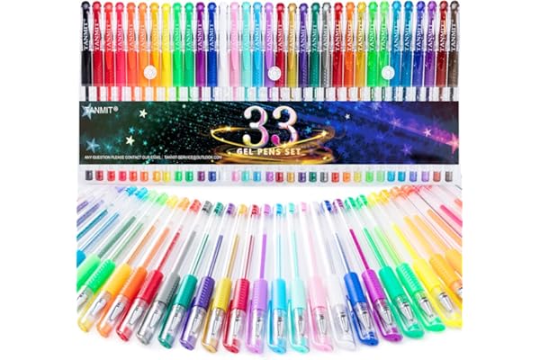 33 Color Gel Pen Fine Point Colored Pen Set with 40% More Ink for Adult Coloring Books, Drawing, Doodling, Scrapbooks Journaling