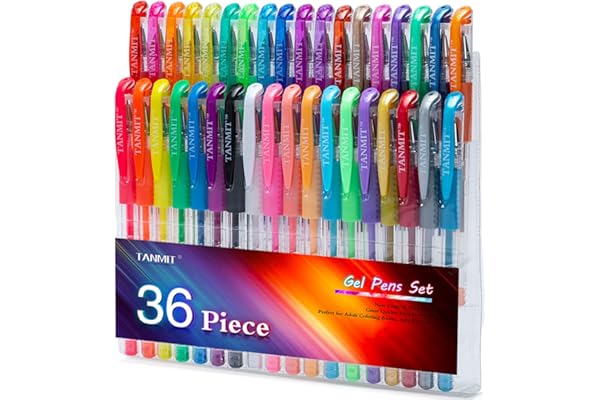 36 Colors Gel Pens Set for Adult Coloring Books, Colored Gel Pen Fine Point Marker, Great for Kids Adult Doodling Scrapbooking Drawing Writing Sketching
