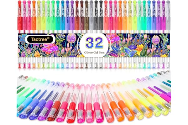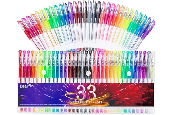33 Colors Neon Glitter Pens Set Gel Art Markers with 40% More Ink for Adult Coloring Books, Drawing, Journaling, Doodling