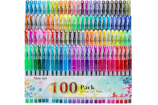 100 Color Glitter Pen Set for Making Cards, 30% More Ink Neon Glitter Gel Marker for Adult Coloring Books, Journaling Crafting Doodling Drawing